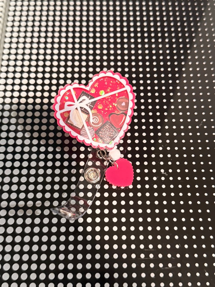 Materials: thick acrylic, glitter, vinyl, UV resin.